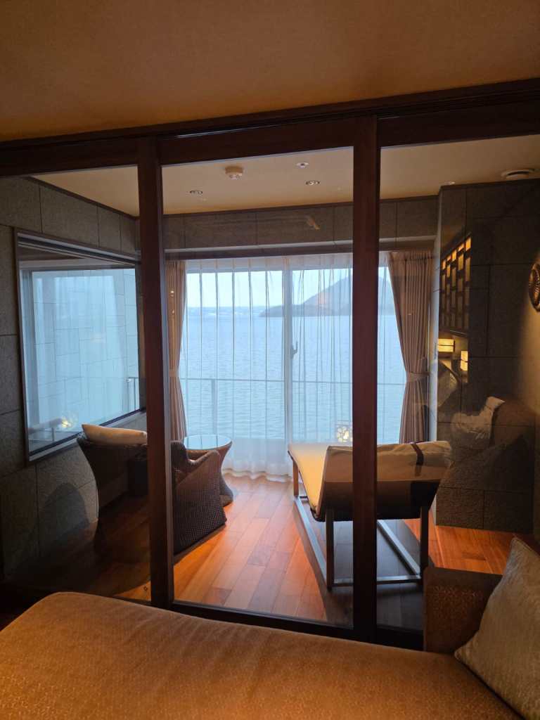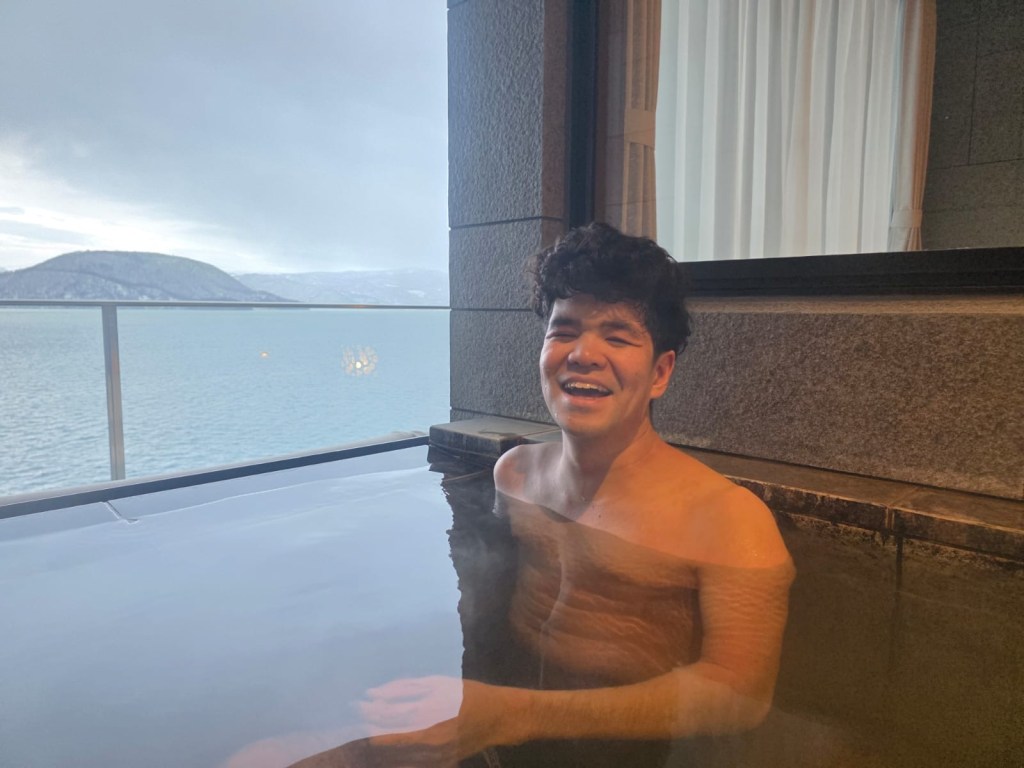 On Wednesday we’re heading to Lake Toya for a one‑night stay. The lake is known for its clear, ice‑free waters throughout the year, its surrounding mountains—including the active Mount Usu—Nakajima Island, and the soothing Toyako Onsen hot springs. It seemed like the perfect place to visit before flying from Sapporo to Osaka the following day.