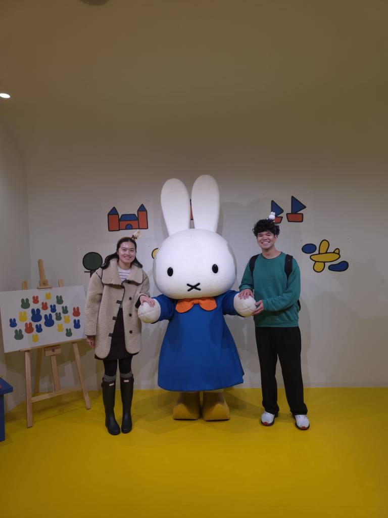 If, like us, you’ve never known much about Miffy, she’s a fictional rabbit created by Dutch artist Dick Bruna, the star of a long‑running series of minimalist picture books. Her simple lines and gentle expression have made her wildly popular in Japan—so much so that many people assume she’s a homegrown character. That popularity has blossomed into a whole ecosystem of Miffy Style shops, themed cafés, and even the world’s first Miffy‑themed park, Miffy Wonder Square, at Huis Ten Bosch. There you can find Japan‑exclusive items such as kimono‑clad Miffy plush toys alongside the classic Dutch designs. Alex and Laorita will be staying at this theme park later in the trip; we, sensibly, will leave them to it and will head back to Tokyo for those two days.