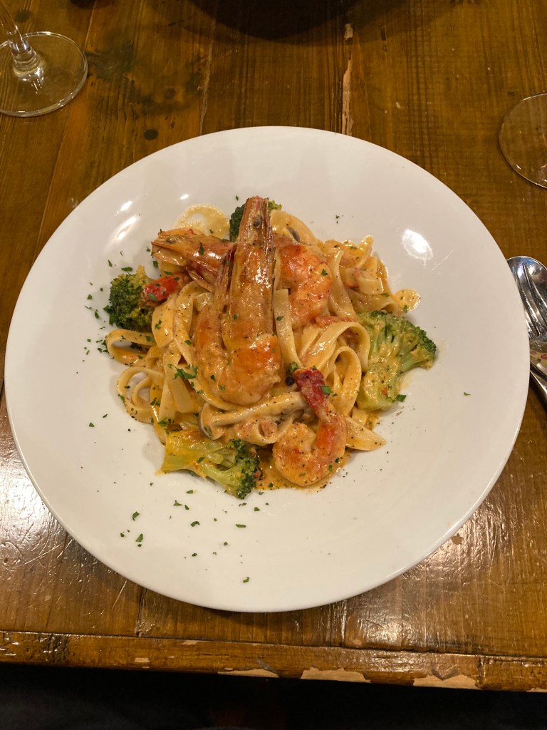 We enjoyed a lovely dinner and some fine Pinot Grigio wine. Who says you can’t get great food in an airport. Prices were very good as well; an added bonus.