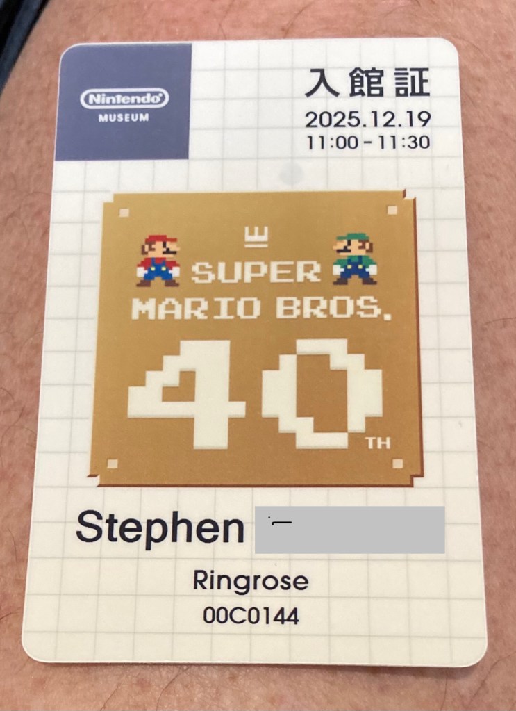 Fortunately, Alex was lucky in the draw and managed to secure four tickets for today. Security at the museum is strict—passport checks, baggage screening, and walk‑through scanners—but you’re rewarded with a charming souvenir ID card. The experience was absolutely worth it. And fittingly, our visit coincides with the 40th anniversary celebrations of two major milestones: the Super Mario series and the launch of the NES in 2025.