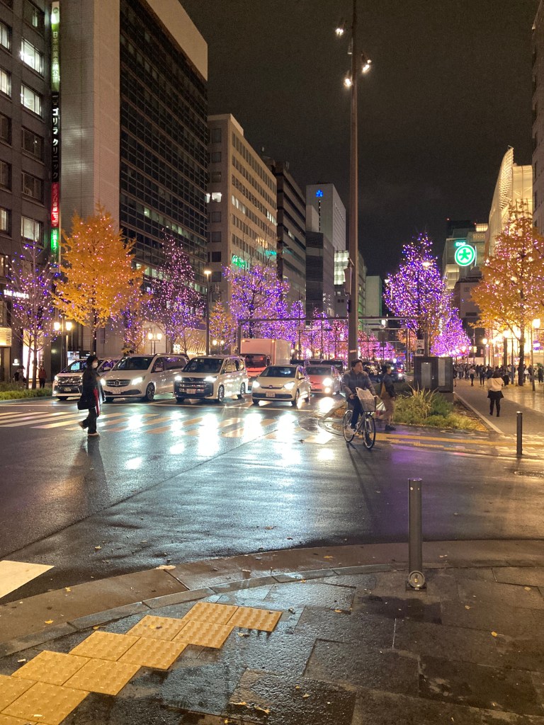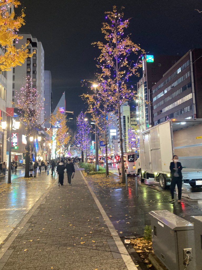 I took a photo of the lighted area near Sapporo station while we waited for the taxi.