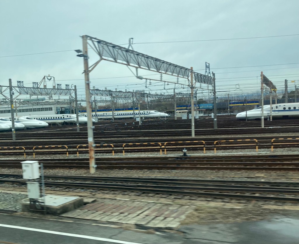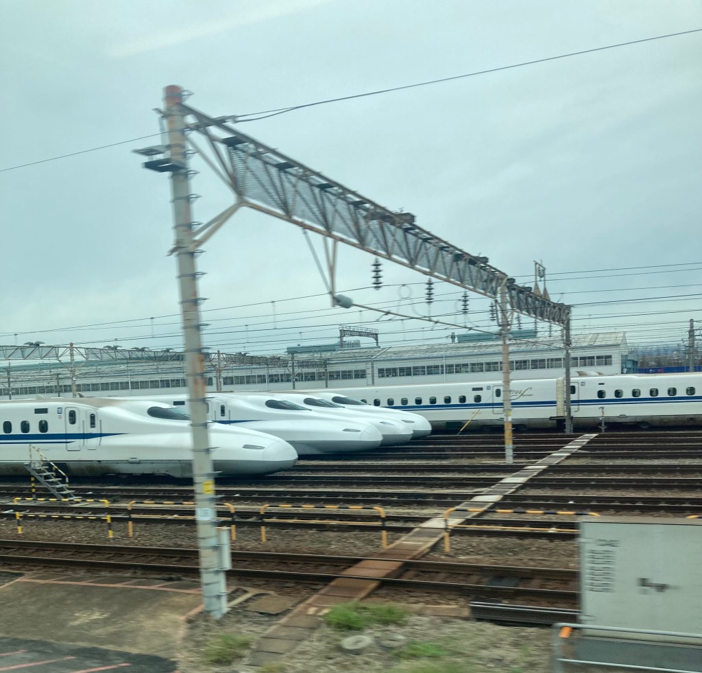 I’d even paid extra to ensure our seats were on the correct side for those classic views of Mt Fuji as we passed. Sadly, the weather had other ideas and the mountain never revealed itself. Fortunately, we already have plenty of Fuji photos from our four-year posting in Tokyo between 1994 and 1998.