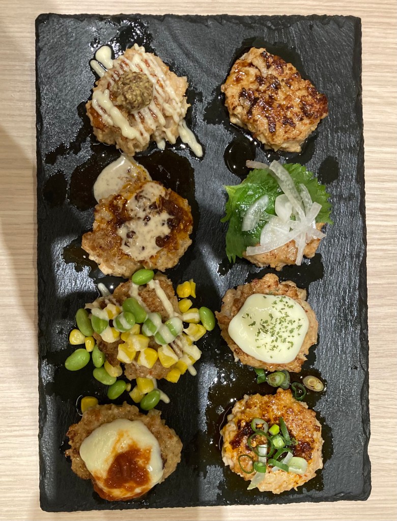 Tonight we headed into Hamamatsucho for dinner and returned to Ramen Bar Na Na Mi. As we’ve eaten there before, we found the food was just as good as we remembered. One of the standout dishes was a selection of their in‑house chicken patties, each with its own flavour. Very tasty.
