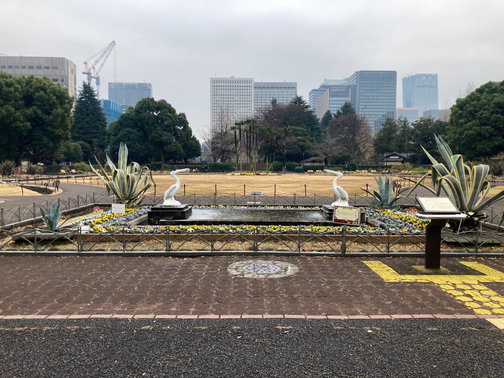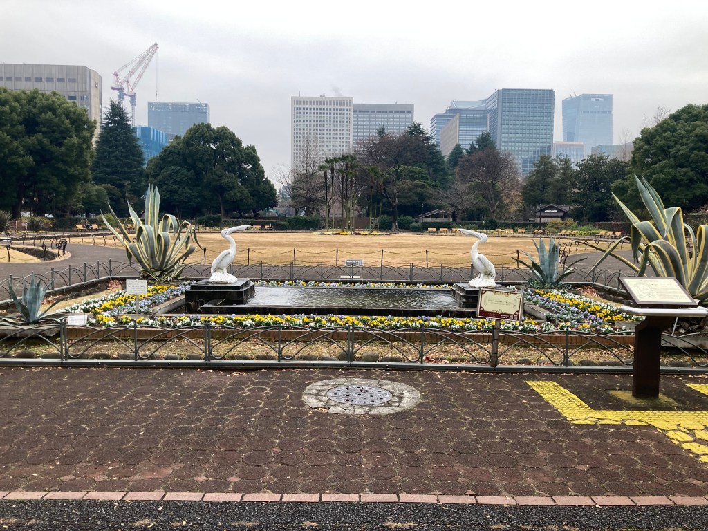 We wandered into a charming German‑style garden tucked inside Hibiya Park, a quiet reminder of Japan’s early fascination with Western landscape design. Created in the Meiji era, it holds the distinction of being the very first Western‑style garden in the country. Symmetrical paths, orderly flowerbeds, and a dignified stone fountain gave it a distinctly European character—an unexpected contrast to the surrounding modern skyline and the more traditional Japanese sections of the park.