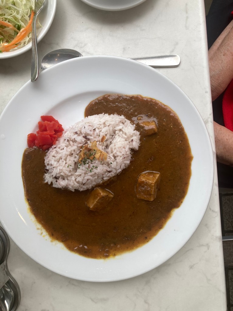 After a gentle wander through the park, we stumbled upon a small café and decided it was the perfect spot for a Christmas lunch—though, of course, the 25th is just another regular workday in Japan. Still, it felt special to us. Maree ordered a Japanese beef curry with rice, while I went for a simple rice and chicken dish. Both were oishikatta desu.