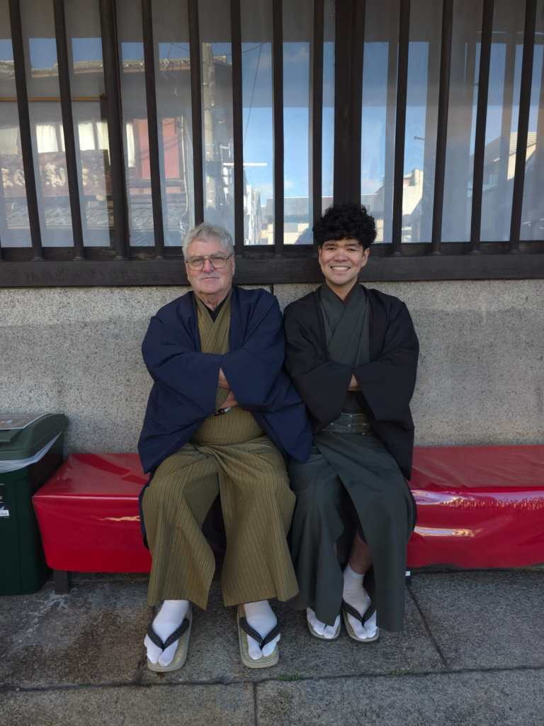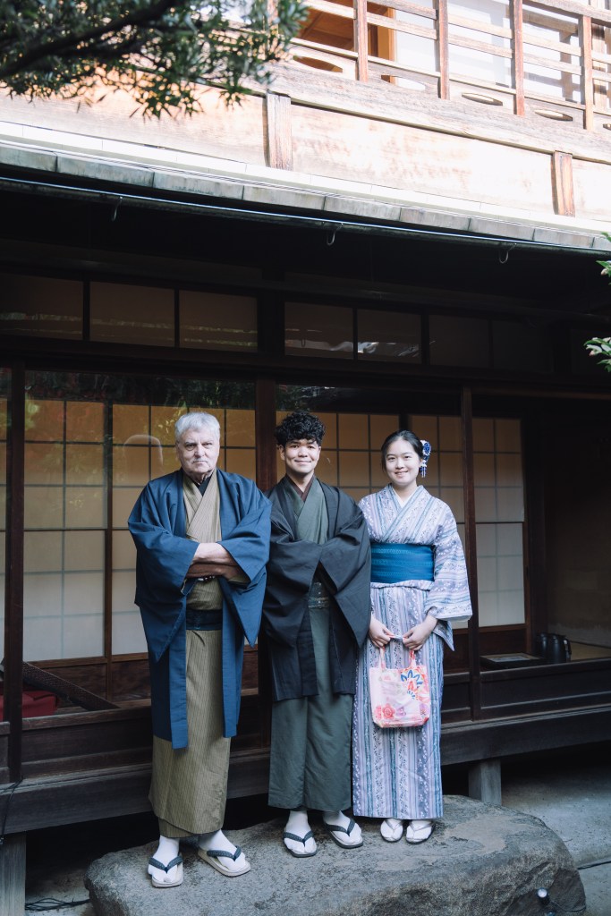 We set out early this morning for our 9:30 booking at the Japanese Tea Ceremony. All of us had been looking forward to it—especially the chance to dress in formal Japanese attire and take part in such a meaningful tradition. Unfortunately, Maree wasn’t feeling well and couldn’t join us, which was disappointing for her. We made sure to take plenty of photos, and Alex even arranged for a professional photographer who captured everything beautifully.