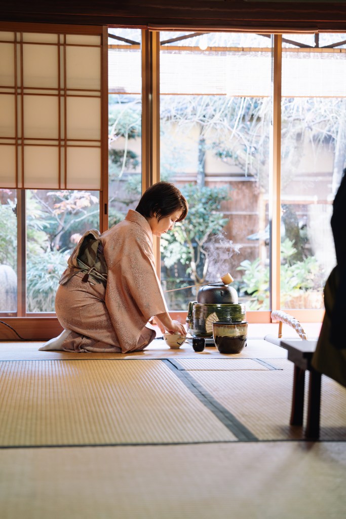 The Japanese tea ceremony, or Chadō/Sadō (“The Way of Tea”), is a deeply ritualised cultural practice centred on preparing and serving powdered green tea (matcha). It embodies mindfulness, harmony, respect, purity, and tranquility—values rooted in Zen Buddhism. Through precise movements (temae), carefully chosen utensils, a serene tea room, seasonal sweets (wagashi), and an appreciation for the uniqueness of each moment, the ceremony transforms a simple act into an art form that honours presence, connection, and quiet beauty.