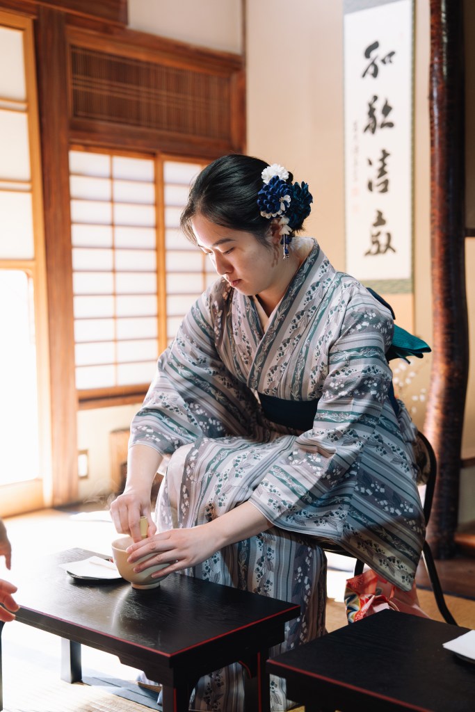 We were then guided into a tatami‑floored room for the Tea Ceremony, a serene space that immediately shifted the mood. Alex had arranged a private session as well, which deepened the experience and made it feel especially personal.