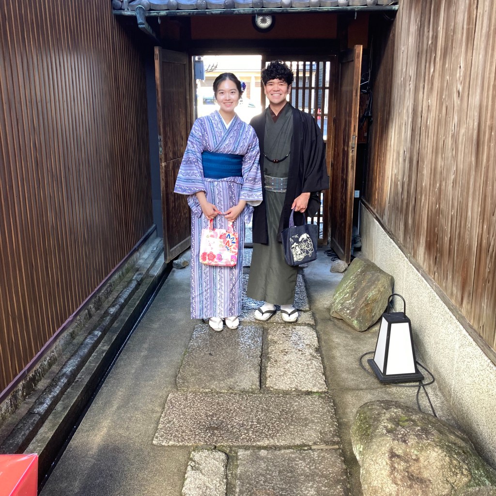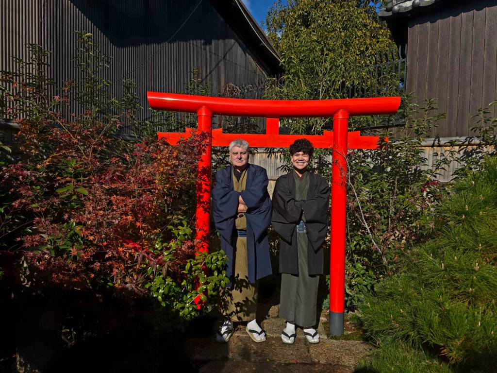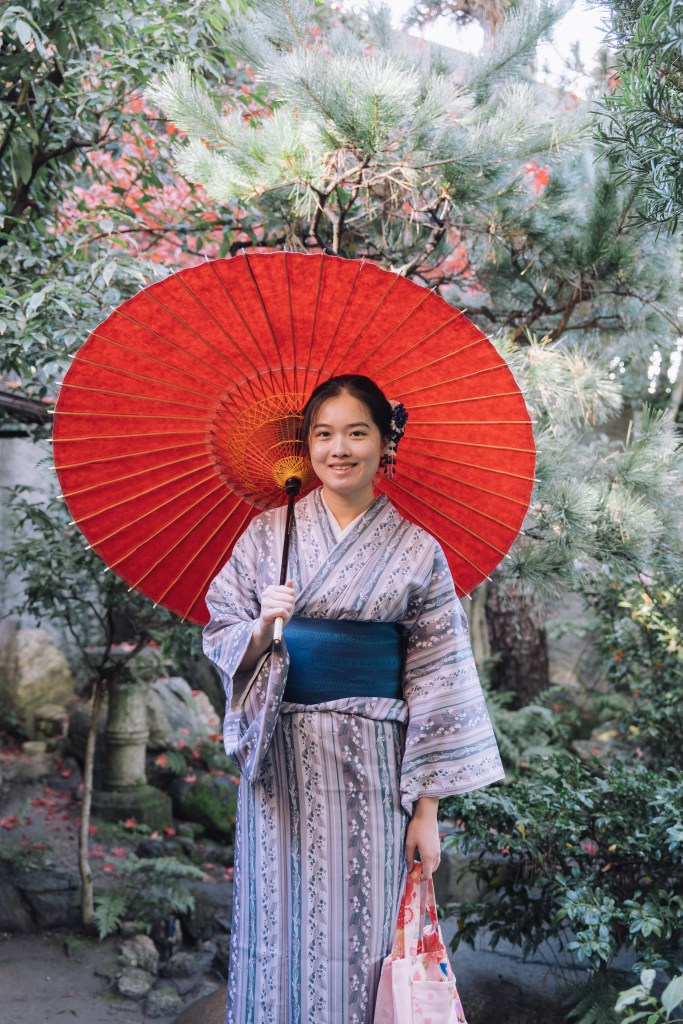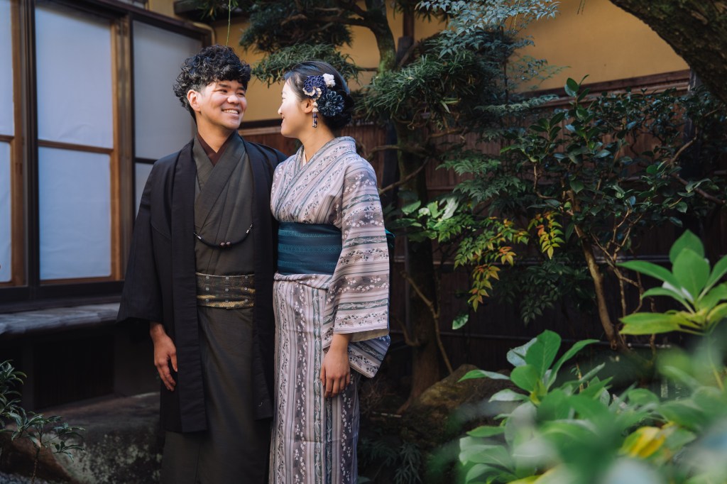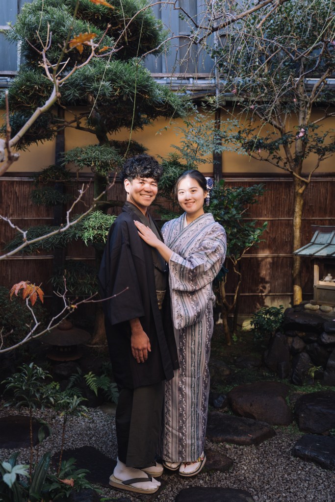 After the ceremony, which lasted about 45 minutes, we were told we were welcome to remain in our traditional dress and wander wherever we liked—the gardens, the nearby streets, even anywhere in Kyoto, including restaurants and public transport. The only requirement was to be back by 18:00. Naturally, we made the most of it and began by taking a few more photos in the garden.