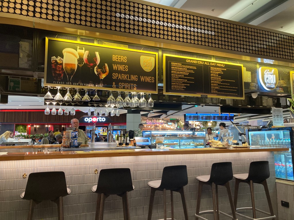 This evening we wandered over to the terminal and had dinner at Grand Cru. The food at the Rydges is decent, though a little pricey for what’s on the menu.