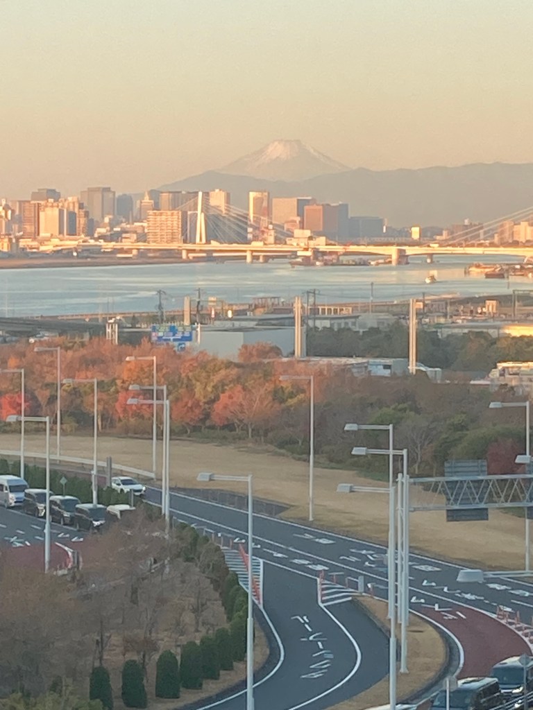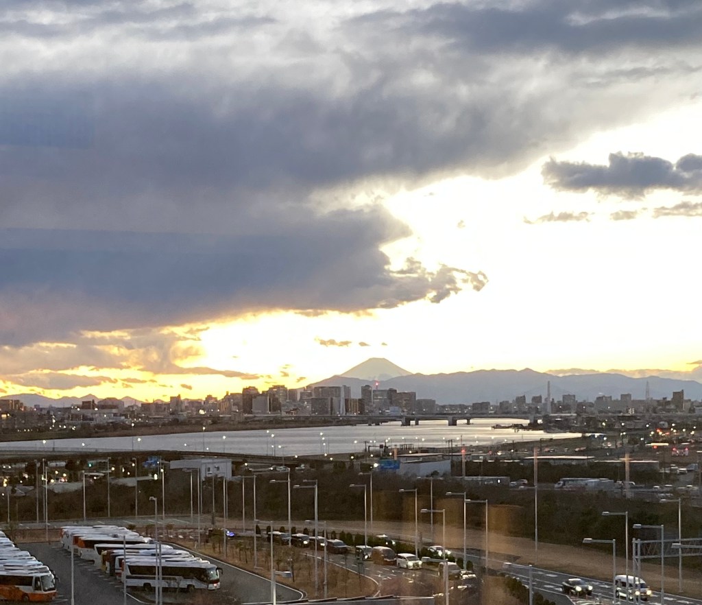 This morning we awoke to a nice view of Mount Fuji in the distance from the hotel window. It isn’t often that you get a great view of Fuji without a ring of cloud around the top. So I took a photo through the window which hasn’t turned out too bad.