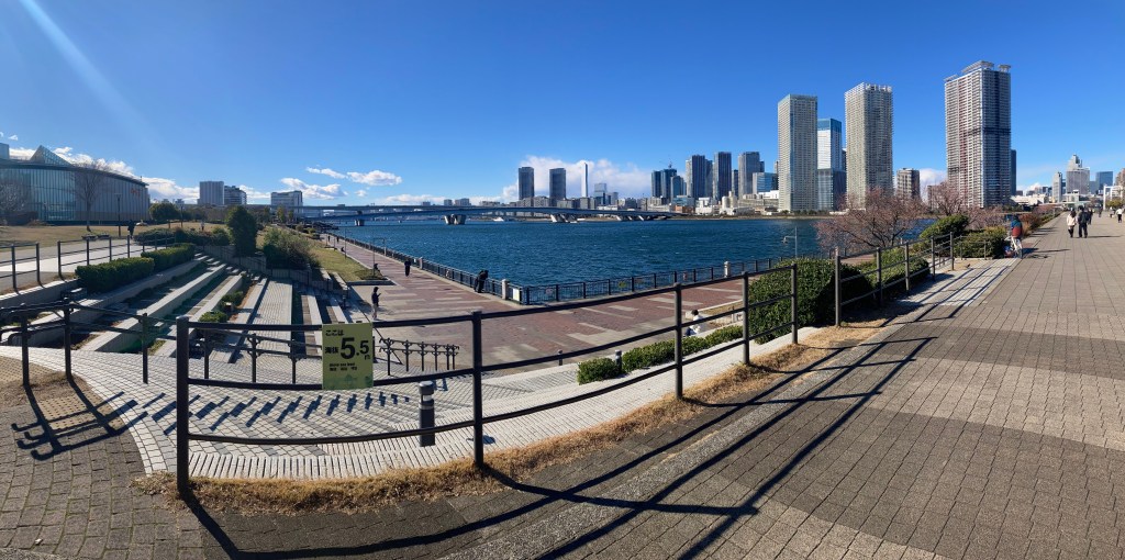 Toyosu itself sits on reclaimed land first developed in 1937. For decades it was an industrial zone filled with dockyards, power and gas plants, freight stations, and warehouses. That landscape remained largely unchanged until the early 1990s, when its proximity to central Tokyo made the area ripe for redevelopment. Since then, high‑rise apartments, office towers, and shopping complexes have transformed the skyline—many of which appear in our photos.