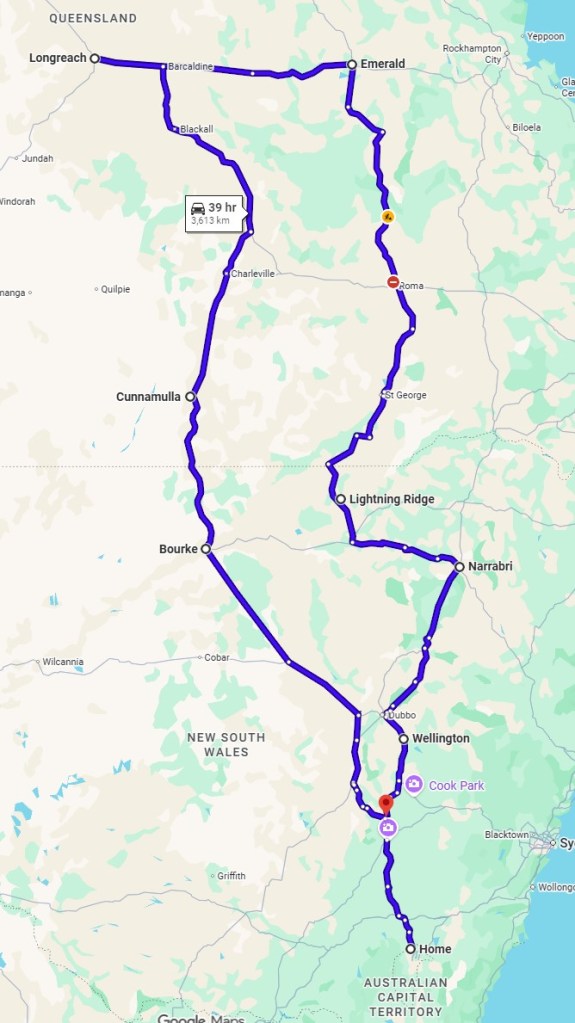 We are putting together a trip to Queensland in May/June 2026 travelling in the caravan. We plan to leave Canberra and travel north to Lightning Ridge before heading across the border into Queensland. We are uncertain at this stage how far north we will travel as plans are in the early stage, but the map shows what I am considering at the moment.